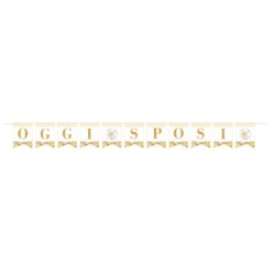 Festone comp. 38 bandiere carta L.15xH.20cm c/nastro 5 m 7 messaggi Glitter 38 pz, 5IT130010. MESSAGGI: Oggi Sposi, Viva gli Sposi, Buon Anniversario, Buon Compleanno, La Mia Comunione, La Mia Cresima, Tanti Auguri.