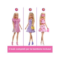 Playset Spazioso e Brillante Il Guardaroba dei Sogni di Barbie si apre rivelando un set di gioco largo 90 cm, con 2 appendiabiti, oltre 20 spazi di stoccaggio, un mobiletto pieghevole con specchio a cuore, uno specchio a figura intera e una mensola per le scarpe. Accessori Inclusi Include una bambola Barbie, più di 25 abiti e accessori come vestiti, scarpe, collane e borse. Mescola e abbina per creare 3 look completi per Barbie! Stile e Gioco di Ruolo I bambini possono scegliere l’outfit perfetto per Barbie, abbigliarla allo specchio e completare il look alla toeletta, prima di uscire con il suo cucciolo. Facile da Riporre e Trasportare Tutti i pezzi possono essere riposti all’interno del guardaroba, che ha una maniglia rosa per il divertimento in movimento. Perfetto per stimolare la creatività e le storie senza fine!