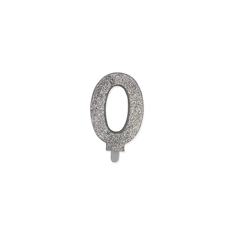 Candelina di cera sweety argento glitter, numero 0, 9cm, DI73900