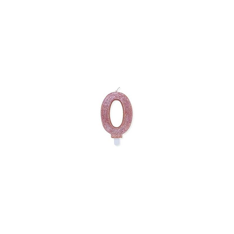 Candelina per Torta Glitterata Rosa Gold Cm. 9, numero 0, DI74350, per decorare le tue torte.