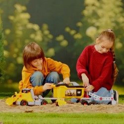Questo veicolo non dovrebbe mancare in nessun cantiere: funge sia da camion che da pala caricatrice o furgone per il trasporto di una cassetta degli attrezzi, robusta e utilizzabile anche come cassone ribaltabile. Un cacciavite è l unico strumento di cui avrai bisogno per convertire il camion con grande facilità e utilizzarlo come veicolo da costruzione Lo completano il cassone ribaltabile e manovrabile e l escavatore sempre pronto all uso. Con questo gioco i bambini allenano le capacità motorie e la coordinazione occhio-mani, nonché la fantasia e creatività grazie alle innumerevoli combinazioni possibili. Adatto ai bambini dai tre anni in su.