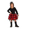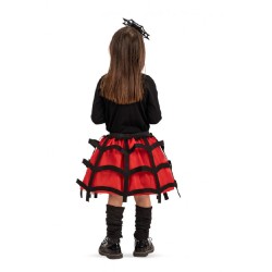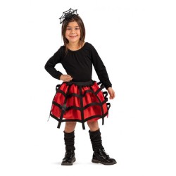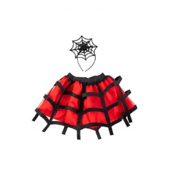 Set composto da gonna e cerchietto decorati con ragno e ragnatela. Kit di accessori in colore nero e rosso da bambina per un travestimento di Halloween.