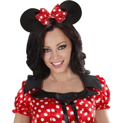 Cerchietto con graziose orecchie topo nere e un papillon rosso con pois bianchi. Con un papillon rosso/bianco a pois. Questo cerchietto ha una taglia unica e si adatta ai vari livelli di testa di un adulto. Ideale per Carnevale o feste a tema. Bellissimo accessorio per il vostro costume