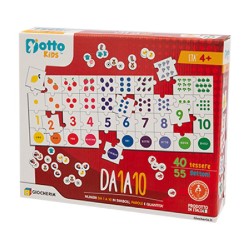 Gioco educativo e divertente attraverso il quale i bambini possono familiarizzare con i concetti di numeri e di sequenza. Oltre ai puzzle ad incastri e i numeri da 1 a 10, una serie di gettoni-quantità aggiungono una componente ludica figurstiva ad ognuno dei numeri.