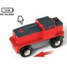 Il treno merci, che funziona a pile, può essere caricato con la gru multifunzione. Il vagone merci è dotato di porte scorrevoli. Il ponte levatoio si alza per permettere il passaggio della nave portacontainer.
