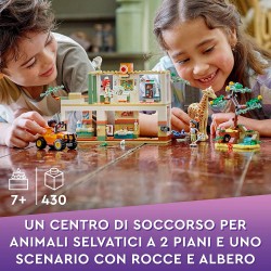 Questo set con soccorso degli animali giocattolo offre una struttura ricca di accessori e strumenti per prendersi cura degli animali, una jeep LEGO, 3 figure di animali e 3 mini bamboline LEGO Friends Sono incluse 3 mini bamboline dei personaggi LEGO Friends Mia, Dr. McKenna e Joaquim, una zebra e una giraffa giocattolo baby, uno scorpione nascosto nella sua tana sotto l albero I bambini possono saltare sulla jeep LEGO per correre a salvare gli animali feriti e portarli al centro, dove possono usare il kit medico per esaminare un animale giocattolo e scannerizzare le lesioni Sono inclusi accessori come delle pinze, un biberon, una macchina fotografica giocattolo, un walkie talkie, un termometro, un binocolo giocattolo, strumenti da veterinario e un antenna satellitare Questo set di animali LEGO Friends è un idea regalo stupenda per i bambine e le bambine dai 7 anni in su che amano la natura e gli animali, per un compleanno o per un occasione speciale.