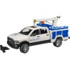 L autocarro di servizio RAM 2500, con faro rotante e prolunga del volante, porta con sé tanto divertimento durante il gioco. Le porte del pick-up possono essere aperte e quindi consentono l accesso alle figure bworld (non incluse). Gli attrezzi necessari e i pezzi di ricambio possono essere riposti nei vani di stoccaggio su entrambi i lati. Il portellone posteriore può essere aperto e il gancio di traino è staccabile La gru di montaggio può essere estesa e ruotata.