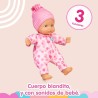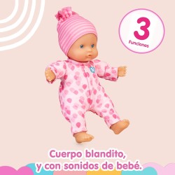 Questa adorabile bambola ha tre funzioni: quando le premi le mani o i piedi emette dei graziosi suoni da neonato, aggiungendo momenti teneri al gioco. Può mettersi il dito in bocca imitando il comportamento dei veri bambini. Un dettaglio che piacerà ai più piccoli. Realizzata con materiali morbidi e piacevoli al tatto, questa bambola è stata progettata pensando al comfort e alla sicurezza dei bambini mentre giocano e la coccolano. I suoni di Nenuco stimolano il gioco di ruolo, aiutando i bambini a sviluppare empatia. Le sue dimensioni maneggevoli e le sue semplici funzioni lo rendono il compagno perfetto per i più piccoli, accompagnandoli nei loro primi giochi pieni di amore e tenerezza.
