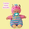 Nenuco Monster Friends Rosa, Bambola 15 cm, corpo morbido, vestitino rosa, ciuccio, + 10 mesi, Famosa (NFNB1100)