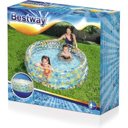 ora ancora più divertimento per le piccole abenteurer, il "trasparente Sea Life" planschbecken con una capacità di 697 litri d acqua invita planschen e giocare in un raffreddamento bagnata. Questa piscina per bambini realizzato in resistente vinile con tre stesso anelli in design trasparente con mare scena promette massimo piacere colorato, planschen nell acqua non ha mai più divertente realizzato come con il Bestway "trasparente Sea Life piscina per bambini.
