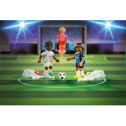 PLAYMOBIL Sports & Action 71120 Grande Campo da Calcio, Calcio da Tavolo per Bambini: 2 Portieri, 1 Calciatore in Posizione di Tiro, 3 Palline, Giocattolo per Bambini da 5 Anni in su