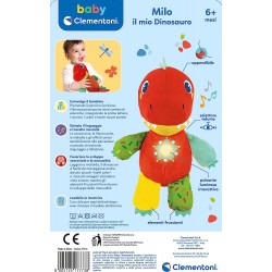 Clementoni- Milo Il Mio Dinosauro-Peluche Sviluppo Multisensoriale, Interattivo, Educativo, Gioco Bambino 6 Mesi, Lavabile in Lavatrice, Colore Italiano, 17773