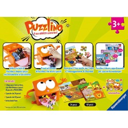 Puzzlino è un simpatico e buffo personaggio, che diventerà il compagno di giochi preferito del vostro bambino e lo aiuterà nella realizzazione dei puzzle. Puzzlino canta, parla e farà morire dal ridere grandi e piccini, con un sacco di frasi e versi divertenti! Durante il gioco inoltre, guida il bambino dandogli suggerimenti e utili consigli, che lo guideranno nella composizione dei puzzle. Puzzlino è ideato appositamente per i puzzle Ravensburger!!! Formati consigliati: 2 x 12 pezzi, 2 x 24 pezzi, 3 x 49 pezzi Non compatibile con formato Giant da pavimento Dimensioni confezione: 37x27x18 cm La confezione contiene Puzzlino e due splendidi puzzle da 24 e 49 pezzi!!! Per bambini a partire da 3 anni