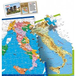 Questo fantastico gioco 2 in 1 è un puzzle fronte retro con la cartina dell Italia fisica e politica e un divertente gioco di carte per mettersi alla prova e arricchire le conoscenze dei più importanti monumenti, della cucina tipica e di tutto quello che ci rende fieri del nostro Made in Italy. Realizzato in Italia. Il diveritimento prosegue online, con tanti nuovi contenuti educativi da scaricare! Età consigliata: + 7 anni. Da 1 a 4 giocatori. Made in Italy. › Visualizza altri dettagli prodotto