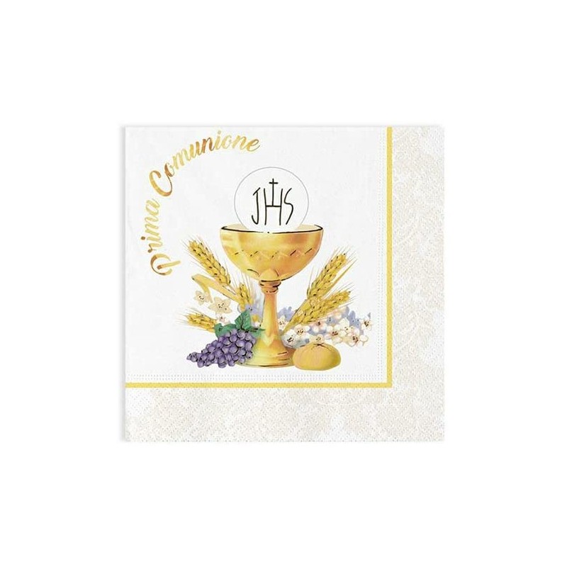 20 Tovaglioli 33 x 33 cm, Santa Comunione, bianchi con decorazioni, DI61666. Big Party. Tovaglioli di carta per decorare le feste di Comunione.