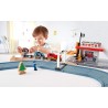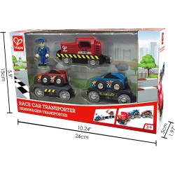 Set di treni: include motore con driver rimovibile TRASPORTATORE: Ogni carrello trasportatore ha una rampa di carico che si piega verso il basso. DRIVER: il tetto del motore scorre indietro in modo che il conducente possa essere posizionato all interno e rimosso. EXTRAS: comprende anche due auto da corsa. Compatibilità: compatibile con Hape e altre principali ferrovie in legno.