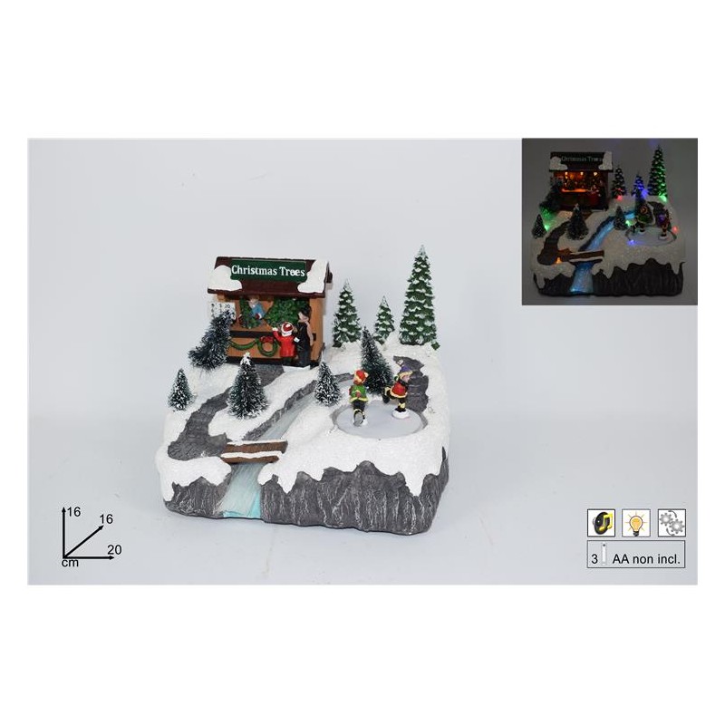 Scenario Natalizio Ruscello con Pista di Ghiaccio, Musica, Luci e Movimento